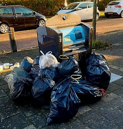 Volle containers, waardoor bewoners hun afval ernaast plaatsen.