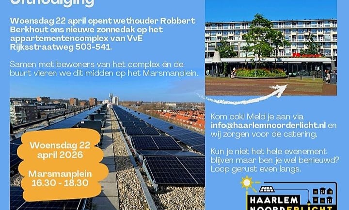 Op woensdag 22 april 2026 is het zover: een mooie stap richting een duurzamere buurt wordt feestelijk gevierd aan de Rijksstraatweg. Op het appartementencomplex met huisnummers 503-541 wordt namelijk een gloednieuw zonnedak officieel geopend.