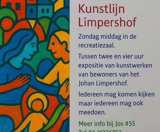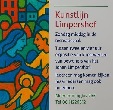 Op zondagmiddag is iedereen van harte welkom in de recreatiezaal van het Johan Limpershof voor een bijzondere expositie: de Kunstlijn Limpershof.